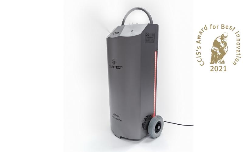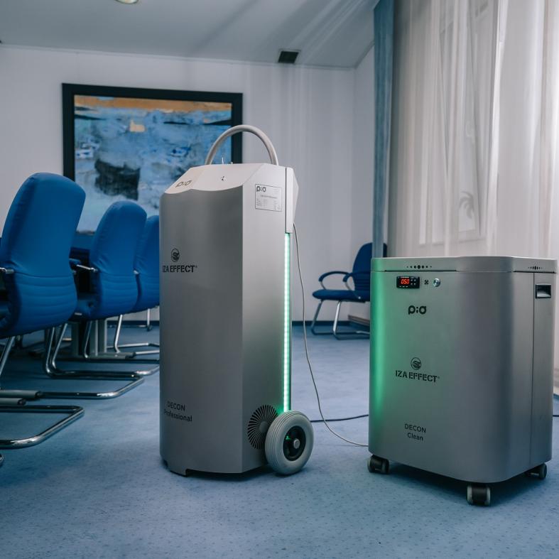 DECON Professional mobile decontaminationsgenerator er en innovativ, høj-teknologisk, kraftfuld, selvstændig og ergonomisk designet mobil enhed til mikrobiologisk dekontaminering eller desinfektion af rum. Enheden er kendetegnet ved integrationen af det innovative PIO Flash® distributionssystem, samtidig med at moderne måle- og kommunikationsteknologi bruges med øget desinfektionskapacitet.