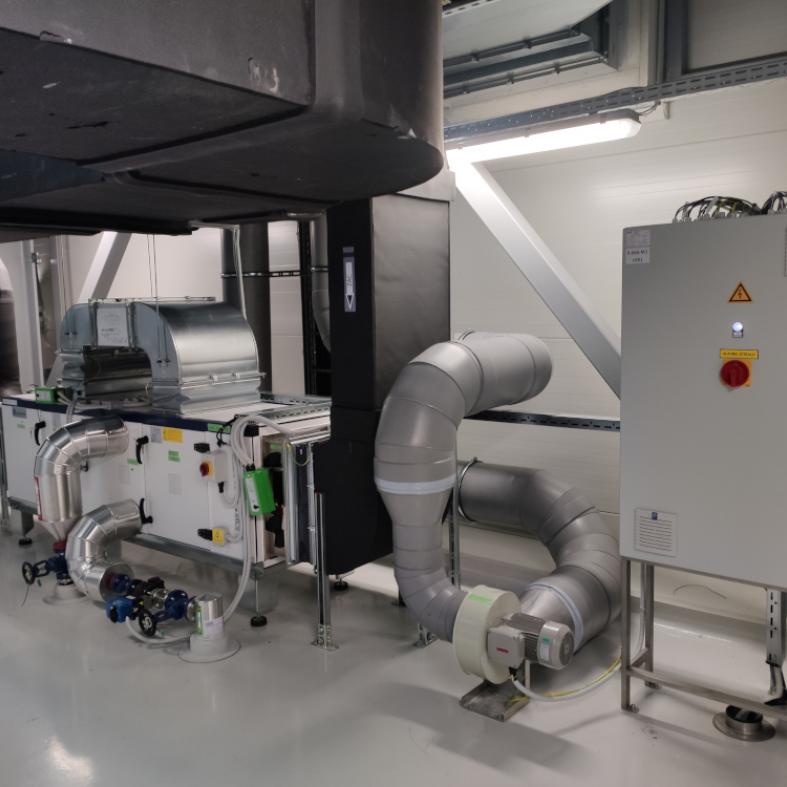 Den maksimale tørringstemperatur er 80 °C, og den maksimale luftstrøm er 1300m³/h. Kammeret fungerer uden recirkulation med 100% luftudskiftning. H14-filteret er placeret i tørrekammeret, hvilket sikrer en passende renhedsklasse inde i tørreværelset.