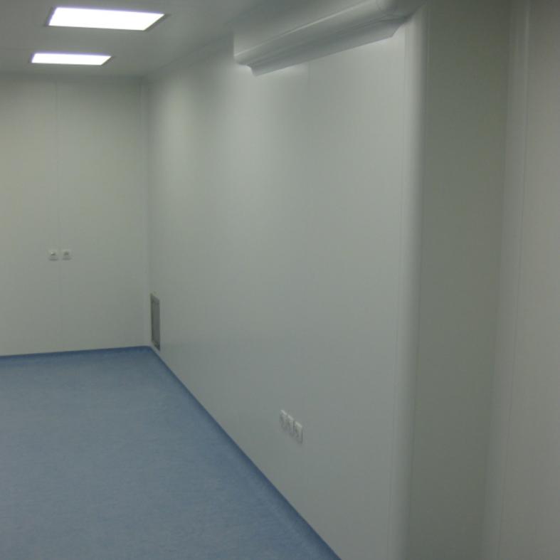 We offer the complete construction of clean rooms, which means the production of floors, walls, ceilings, doors, glazing, assembly of elements in or on part-walls. The rooms are composed of aluminum panel walls and walk-on ceiling. We manage ventilation and purging, we take care of the entire logistics of material and personnel.
