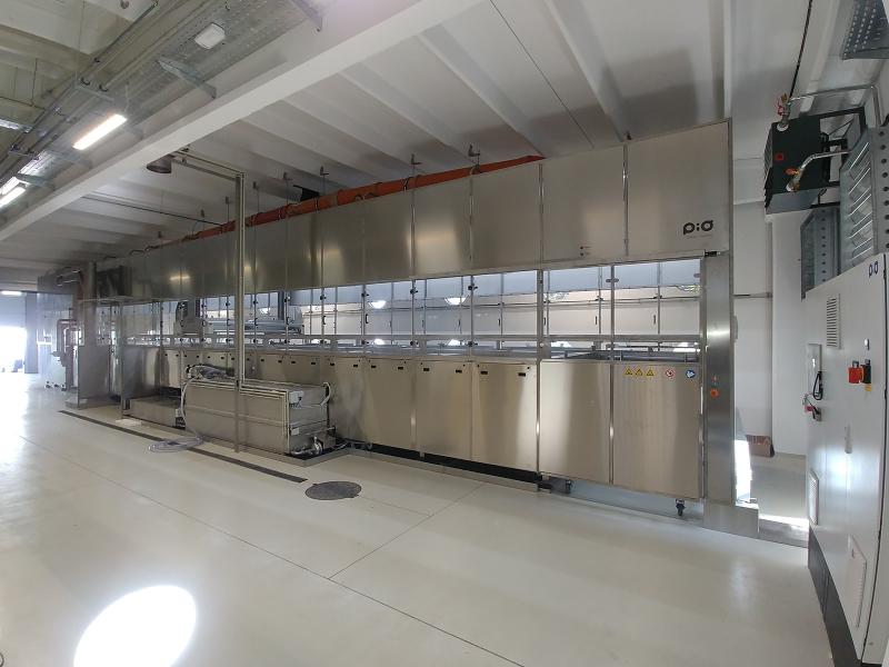 Related productsThe leaching line is designed to leach aluminium from steel objects and plastic masks. The cleaning device uses water-based media or water-based cleaning solvents. The process starts at the entry ramp. The operator is taking care that the transport trolley together with a basket is manually pushed inside the device. In the next step operator selects a recipe and confirms it. Automatic transport is provided for the further transmission of baskets between the baths. The baths perform various operations of leaching, rinsing, blowing and drying. At the end of the process, automatic transport puts the basket on the trolley at the exit ramp. The operator manually pulls the transport trolley from the inside of the device.