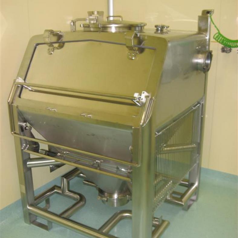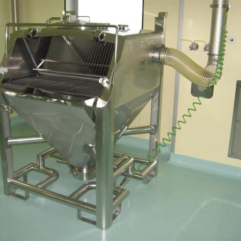 - Die seitliche Öffnung und der Anschluss zum Absaugen gewährleisten eine benutzerfreundliche Ergonomie und schützen den Bediener beim Umfüllen von pulverförmigen Materialien