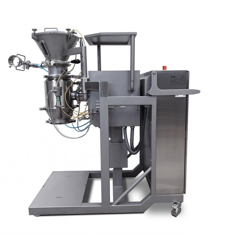 TLS allows milling, sieving, transferring and dosing of materials from different combinations of input and output packaging without a platform. The system consists of: